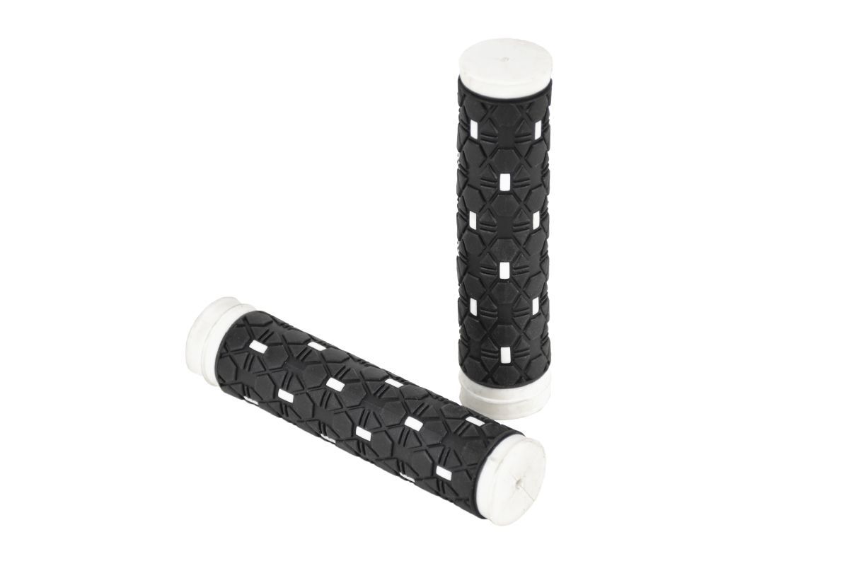 Бренд Juchuang Модель XH-G123 Размер 125 mm Год Без года Цвет черный/белый ШтрихКод 4670094415392 Материал Резиновый компаунд Способ крепления Внатяг на концы руля велосипеда Тип конструкции Моноблок -